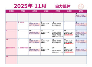 2025年11月の自力整体の予定です。