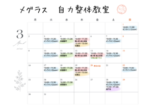 2026年3月の自力整体の予定です。